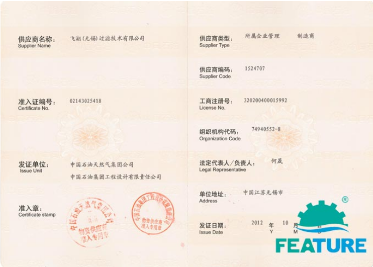 Feature-Tec achieved supplier qualification for Sinopec, CNOOC, and PetroChina, providing quality filtration and separation products for the East-West natural gas transmission project, offshore oil and gas exploration.